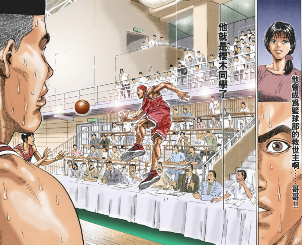 估计在赛后,赤木回想起第一次见到樱木时的场景,他会感到诧异吧,当初那个毫无章法的门外汉,如今却是湘北敲定比赛胜负的关键,如果当初樱木心智不坚,去了柔道社,赤木会不会后悔呢?